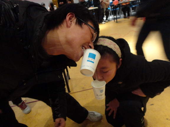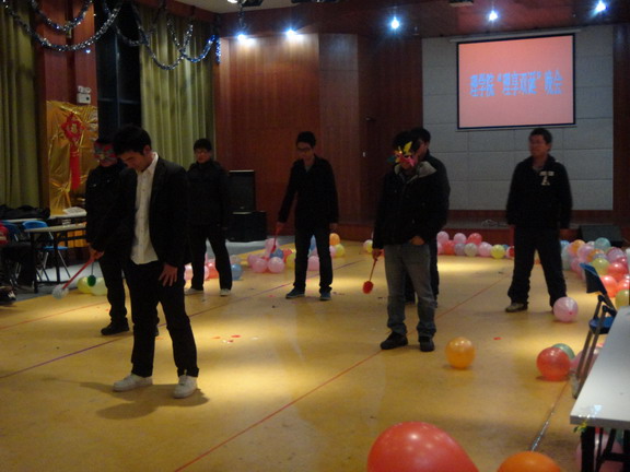 舞会以一段视频开场,在视频中理学院学生会全体成员祝愿我们的学校能够“在壮大中更加壮大,在美好中更加美好”,同时大家也送上了对全体同学的深深祝福。第一个游戏是抢凳子,同学们踊跃参加,哨声、掌声不断。接着858街舞社的四位美女给我们带来了充满现代气息,动感十足的街舞表演,还进行了现场教学。一场搞怪的T台秀引发了现场合影的高潮,学生会内部成员排练的“斧头帮”更是high爆全场。瞎子背瘸子、吹乒乓球、四人接水等游戏穿插其中,博得了观众的阵阵掌声。精彩节目、互动游戏一个接一个,无不将大学生的青春活力展现得淋漓尽致。