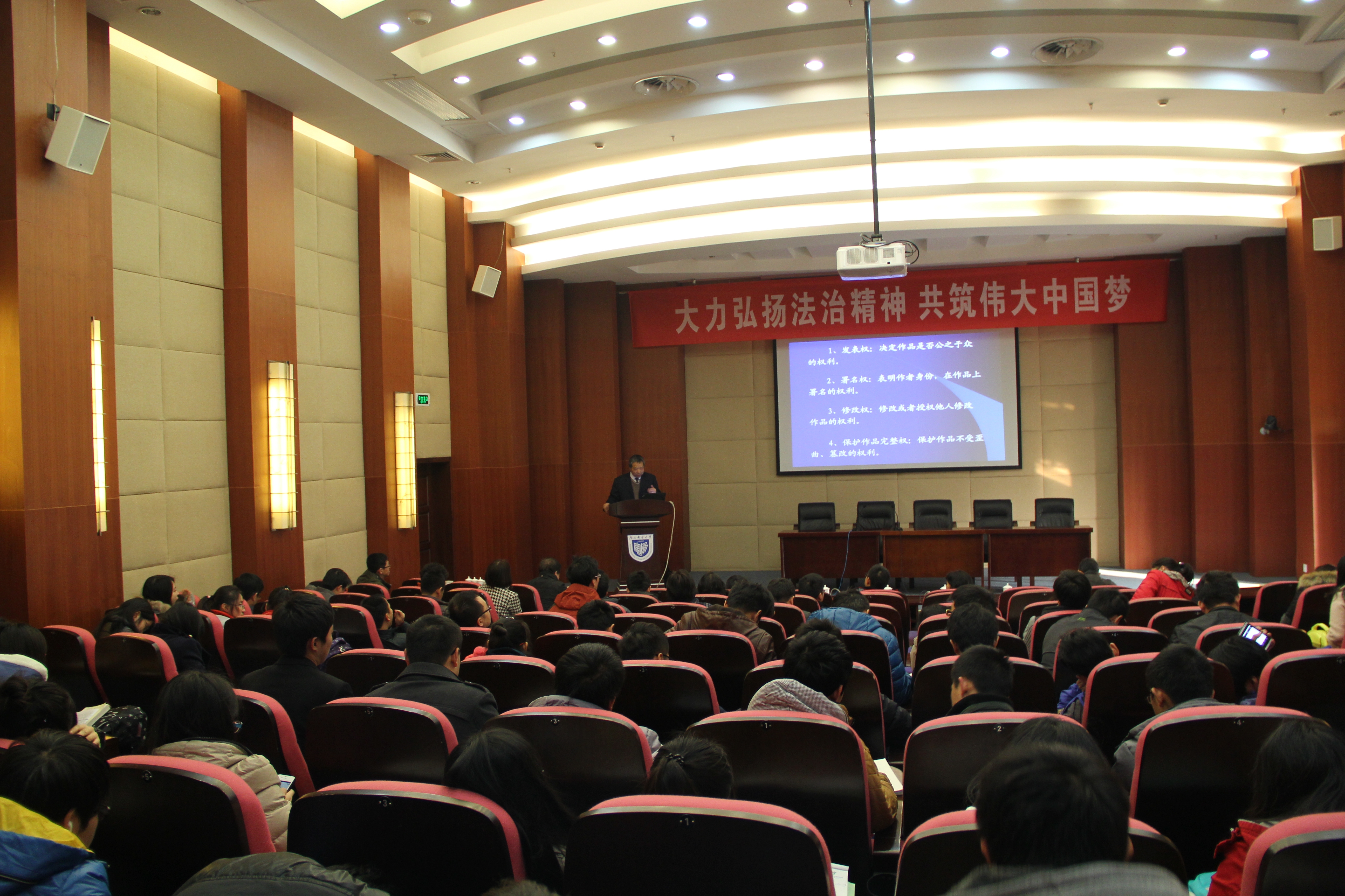 2013年12月4日下午,在南京邮电大学仙林校区行政楼一楼报告厅举行了一场别开生面的普法教育活动,活动邀请了江苏省十一届政协常委、江苏省知识产权保护协会副秘书长王旭东律师就高校科研活动中的知识产权问题举行专题报告。
