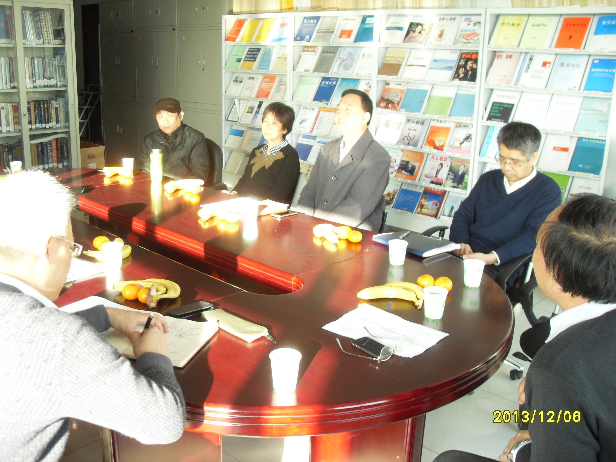 2013年12月6日上午,理学院院长李雷、院党委书记温勇率队一行六人到中国人民大学经济学部统计学院调研,中国人民大学统计学院院长兼竞争力与评价研究中心主任赵彦云、副院长孟生旺、国民经济核算研究所所长高敏雪、六西格玛质量管理研究中心主任何晓群、彭非等在学院会议室热情接待了李院长温书记一行。