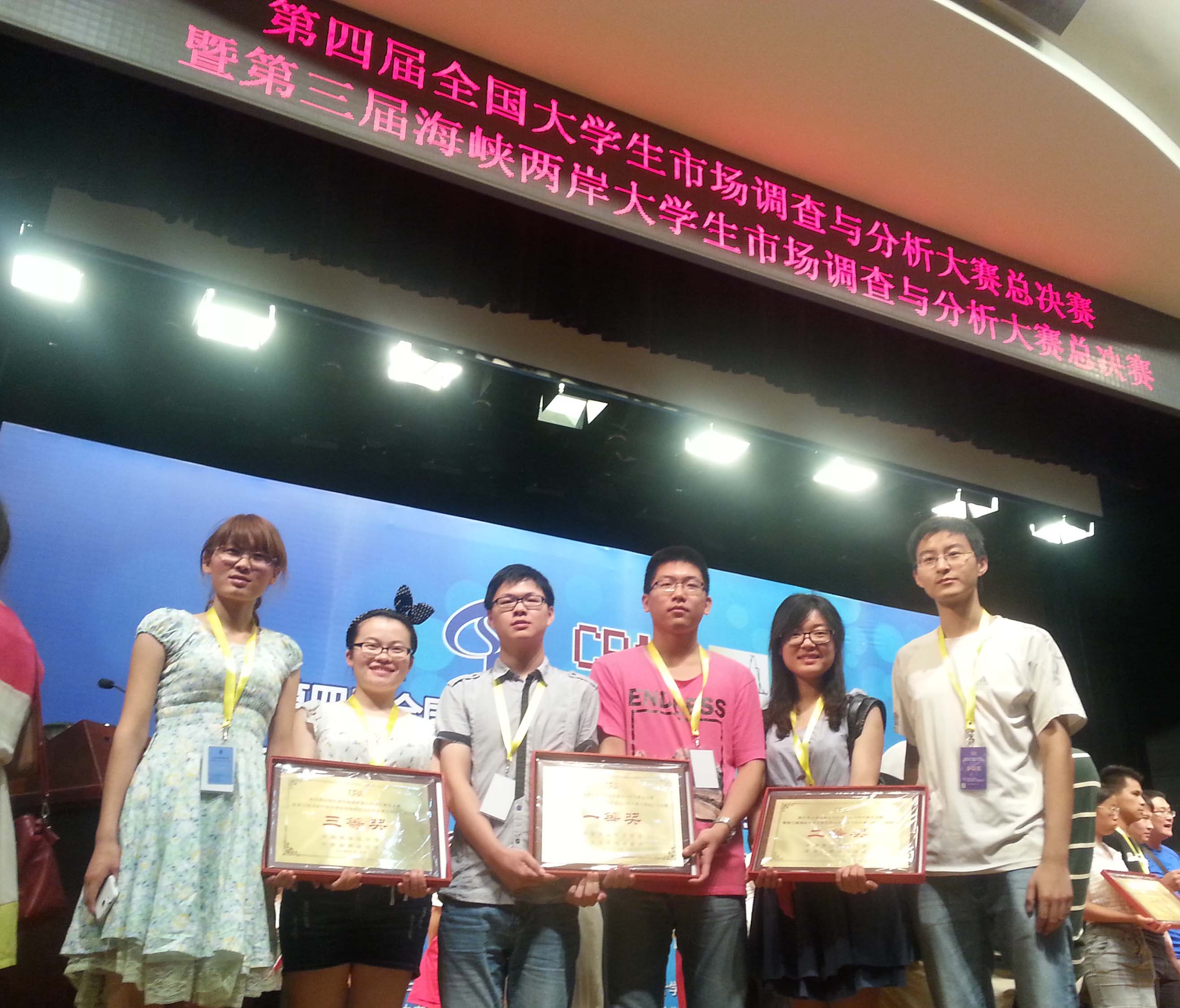 由中国商业统计学会、(台湾)中华应用统计学会主办,中国商业统计学会市场调查与教学研究会、北京商智通信息技术有限公司、北京华通人商用信息有限公司协办,对外经济贸易大学承办的第四届全国大学生市场调查与分析大赛总决赛暨第三届海峡两岸大学生市场调查与分析大赛总决赛于8月22日至24日在北京举行,经过多轮角逐,我院应用统计学专业派出的三支代表队,取得一等奖一个,二等奖一个和三等奖一个的好成绩,这是我院首次派出代表队参加该项赛事。