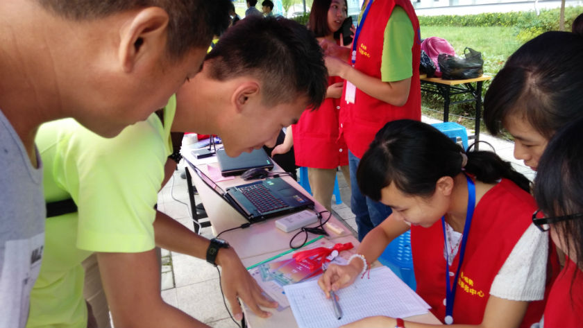 迎新志愿者们有的在接待处耐心地接受家长和新同学的咨询,有的微笑着为学弟学妹办理手续,有的带领他们去往宿舍区,天空虽然时不时下起雨,但这丝毫没有影响到新生接待工作,衬着志愿者们淋湿的衣服和头发的是他们的热情和笑容,这一刻他们是最美的学长学姐。