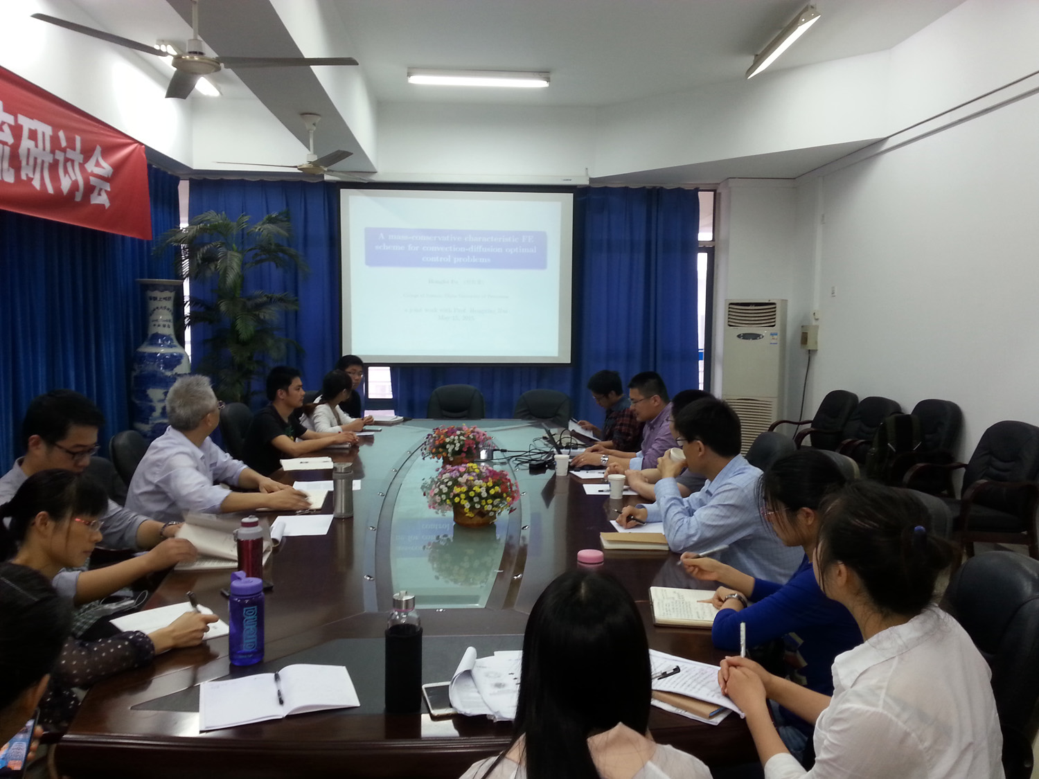 2015年5月15日下午14:00,理学院在教2-501会议室举办理学论坛第五十八次学术活动,论坛邀请中国石油大学付红斐博士以及河海大学胡真博士分别做了题为:“对流扩散最优控制问题的物质守恒型特征有限元方法”以及“利用Dirichlet-to-Neumann映射方法模拟二维光子晶体元件”的学术报告,报告会由理学院副院长兼统计系主任唐加山教授主持。