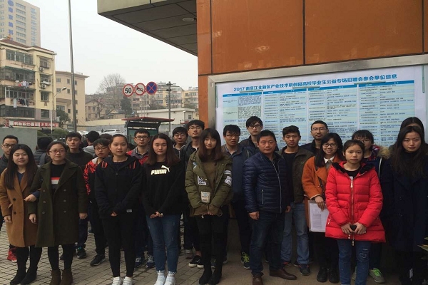 3月25日上午,理学院组织大三、大四部分本科生赴江苏省人才市场参加南京市江北新区产业技术研创园组织的专场招聘活动,学院党委副书记高翔老师前往招聘会现场为同学们加油鼓劲,学院2014级辅导员胡国宝老师全程参与了本次活动的组织和带队工作。