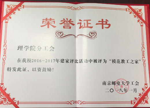 近年来,我院工会在全体老师的积极参与和支持下,紧紧围绕学校、学院的中心工作,积极开展师德师风建设,引导教职员工爱岗敬业、教书育人,并积极关注教职工的生活和身心健康,组织丰富多彩的文化体育活动,受到教职工们的好评。在我校2016-2017年建家评比活动中,我院分工会因各项活动组织到位、表现突出,被评为“模范教工之家”。