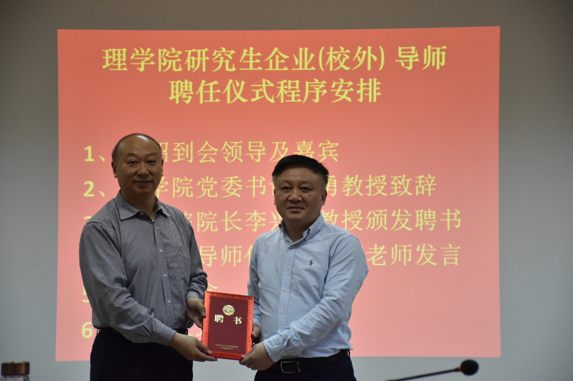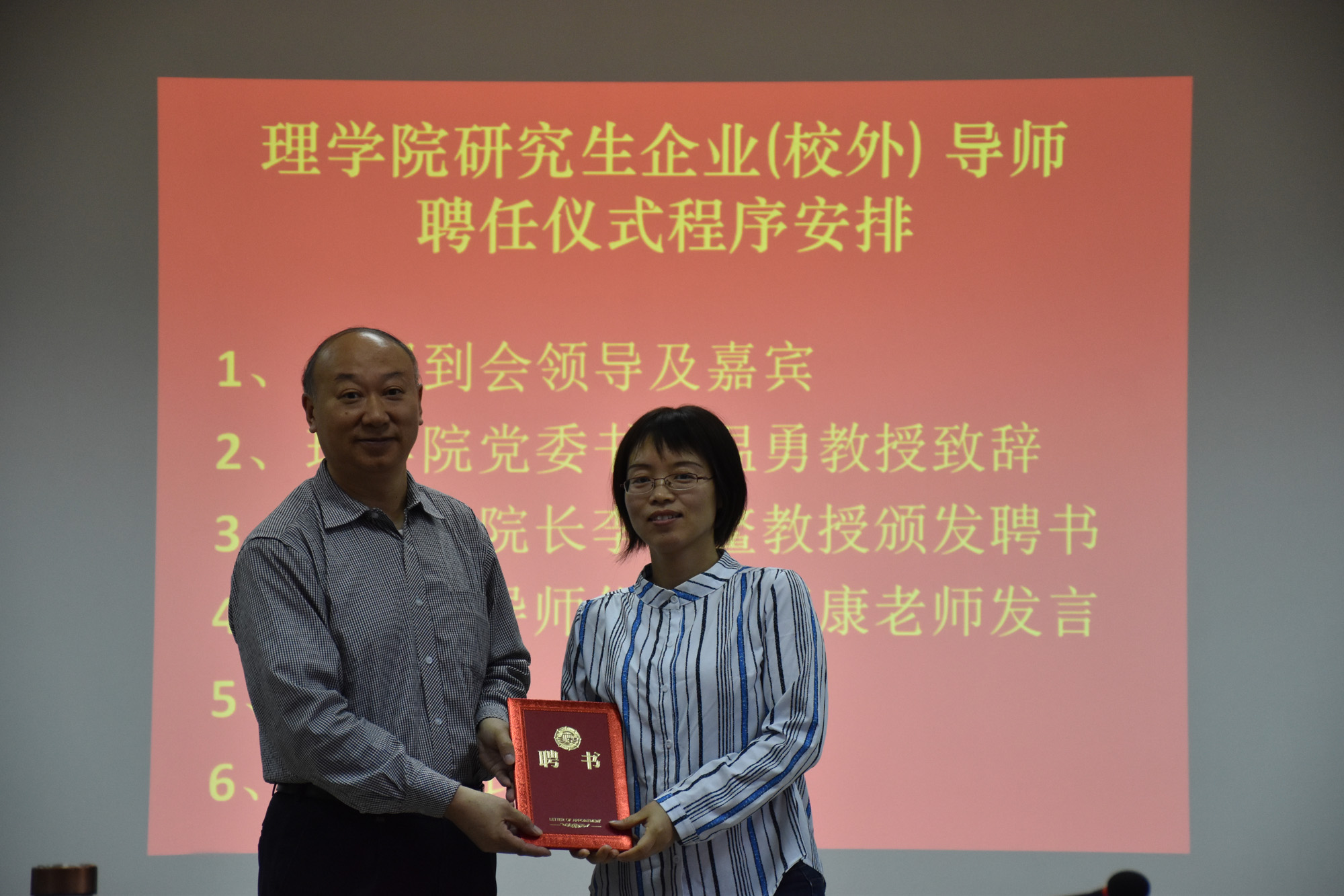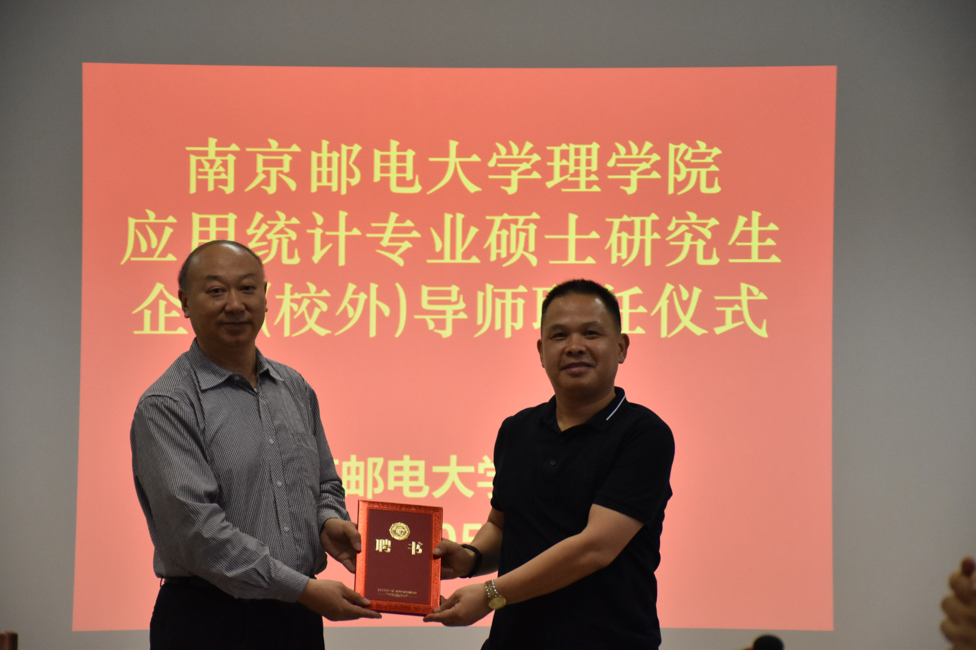 理学院副院长赵洪牛副教授、副书记兼副院长高翔副研究员,经济学院院长助理蔡冬青副教授,理学院院长助理刘胜利教授,全体应用统计专业硕士生导师以及全体应用统计专业硕士研究生参加了聘任仪式。