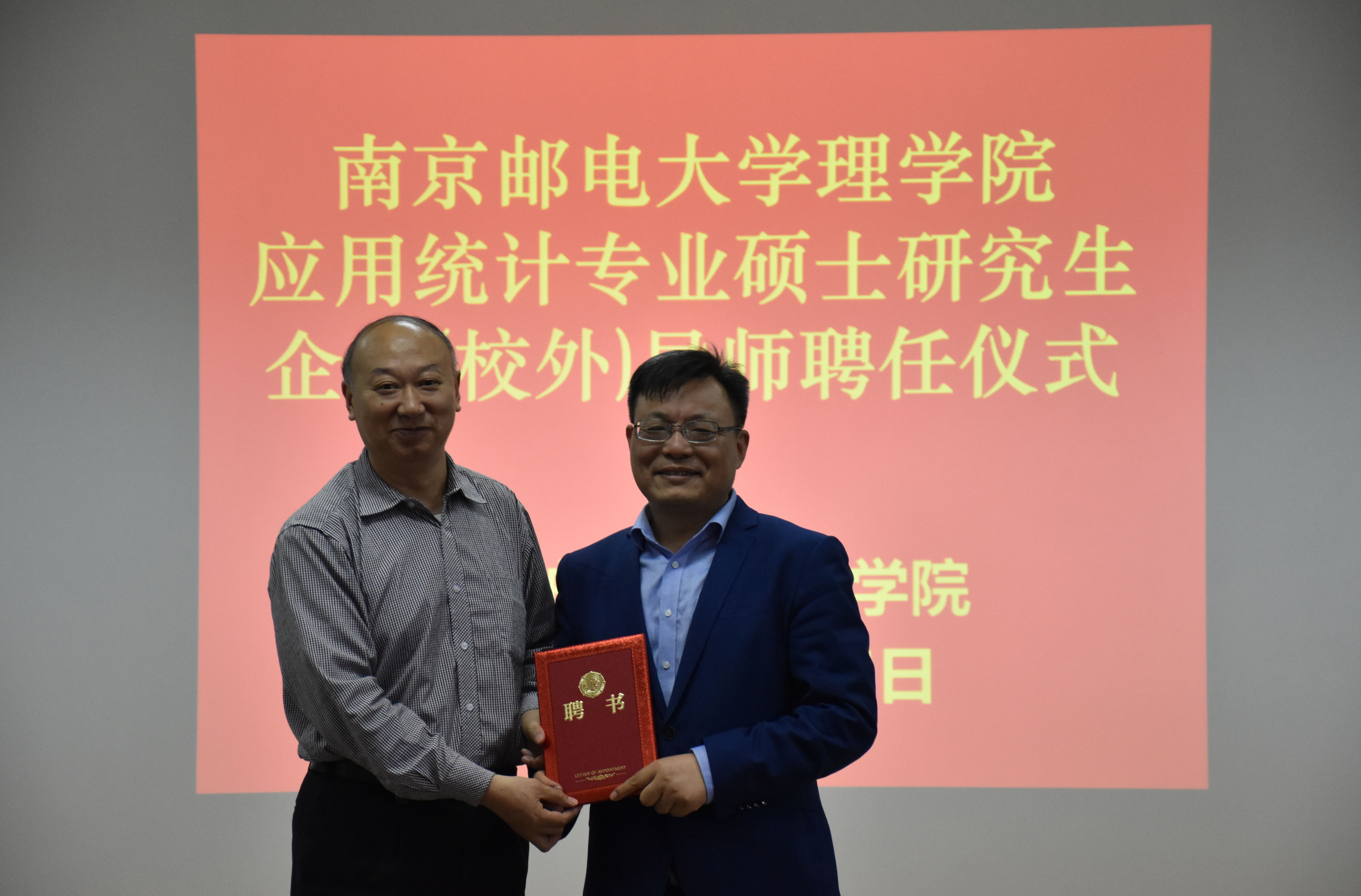 2019年5月15日下午,理学院在仙林校区教2-314会议室举行应用统计专业硕士研究生企业(校外)导师聘任仪式。聘任仪式由理学院分管研究生培养工作副院长唐加山教授主持。