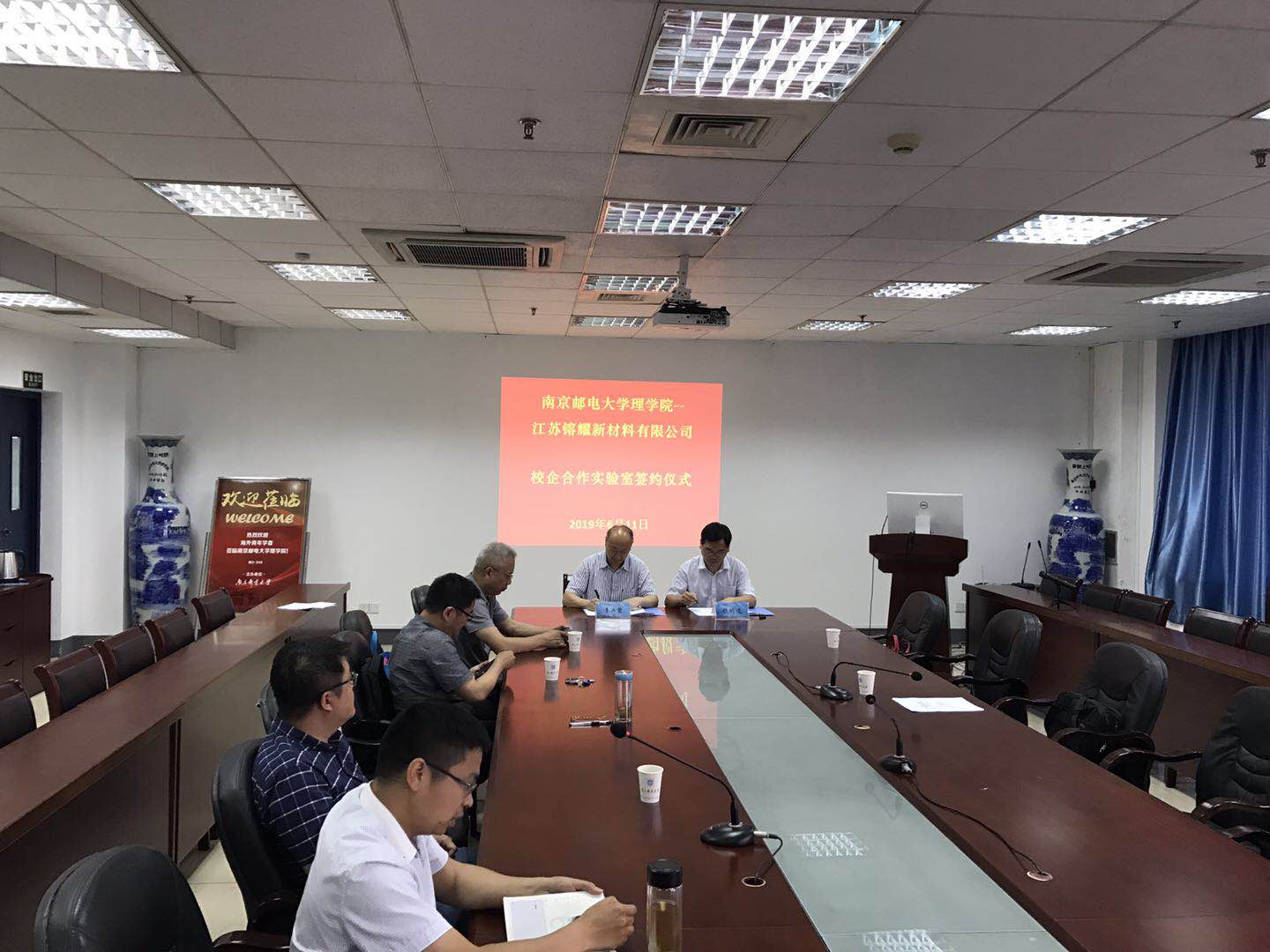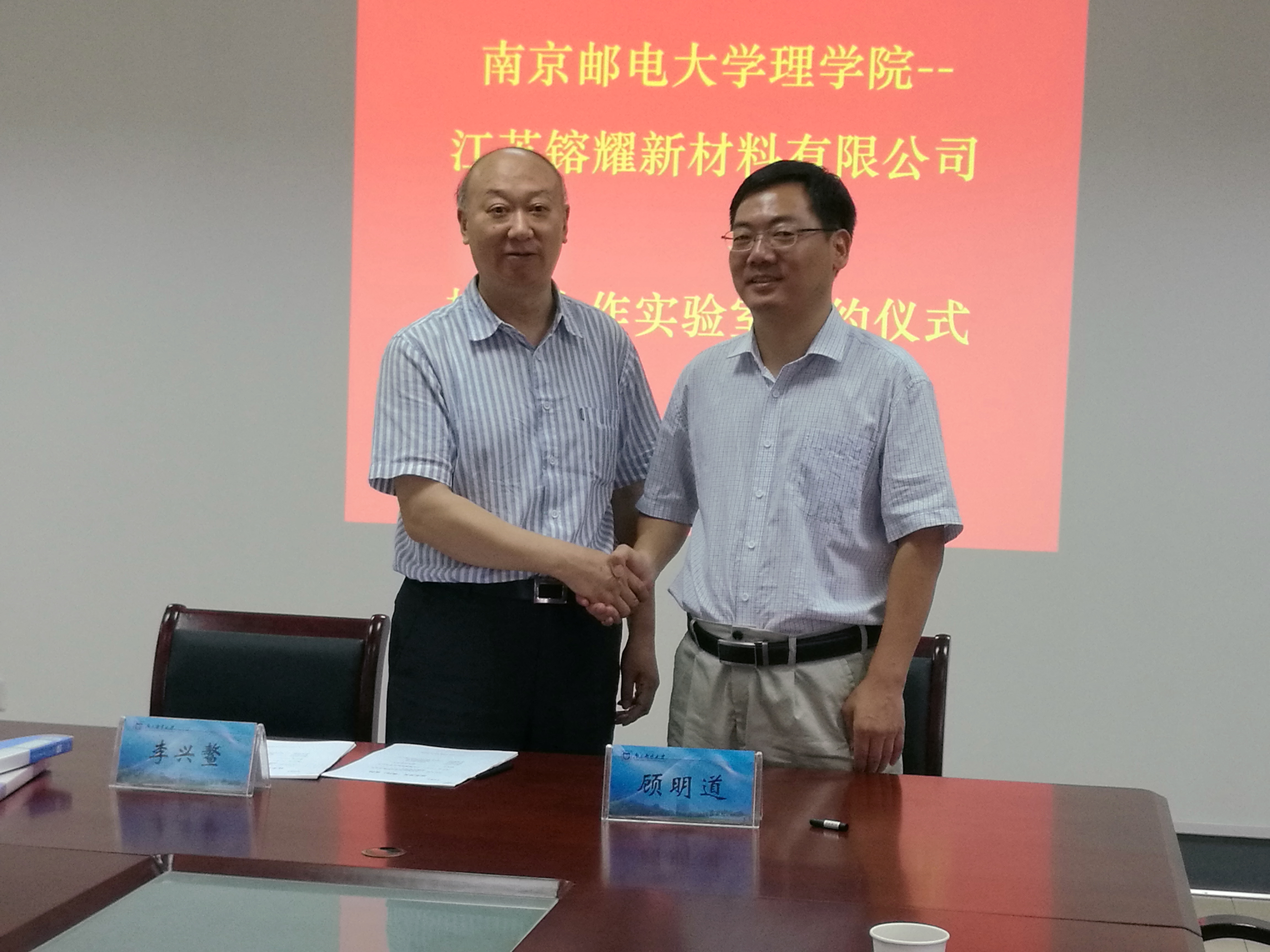 6月11日,南京邮电大学理学院、江苏镕耀新材料有限公司在南京邮电大学教2-314举行了南京邮电大学理学院-江苏镕耀新材料新材料有限公司校企合作实验室签约仪式。江苏镕耀新材料有限公司总经理顾明道,南京邮电大学理学院院长李兴鳌教授,党委书记温勇教授,副院长唐加山教授、普勇教授等领导一同出席了签约仪式。