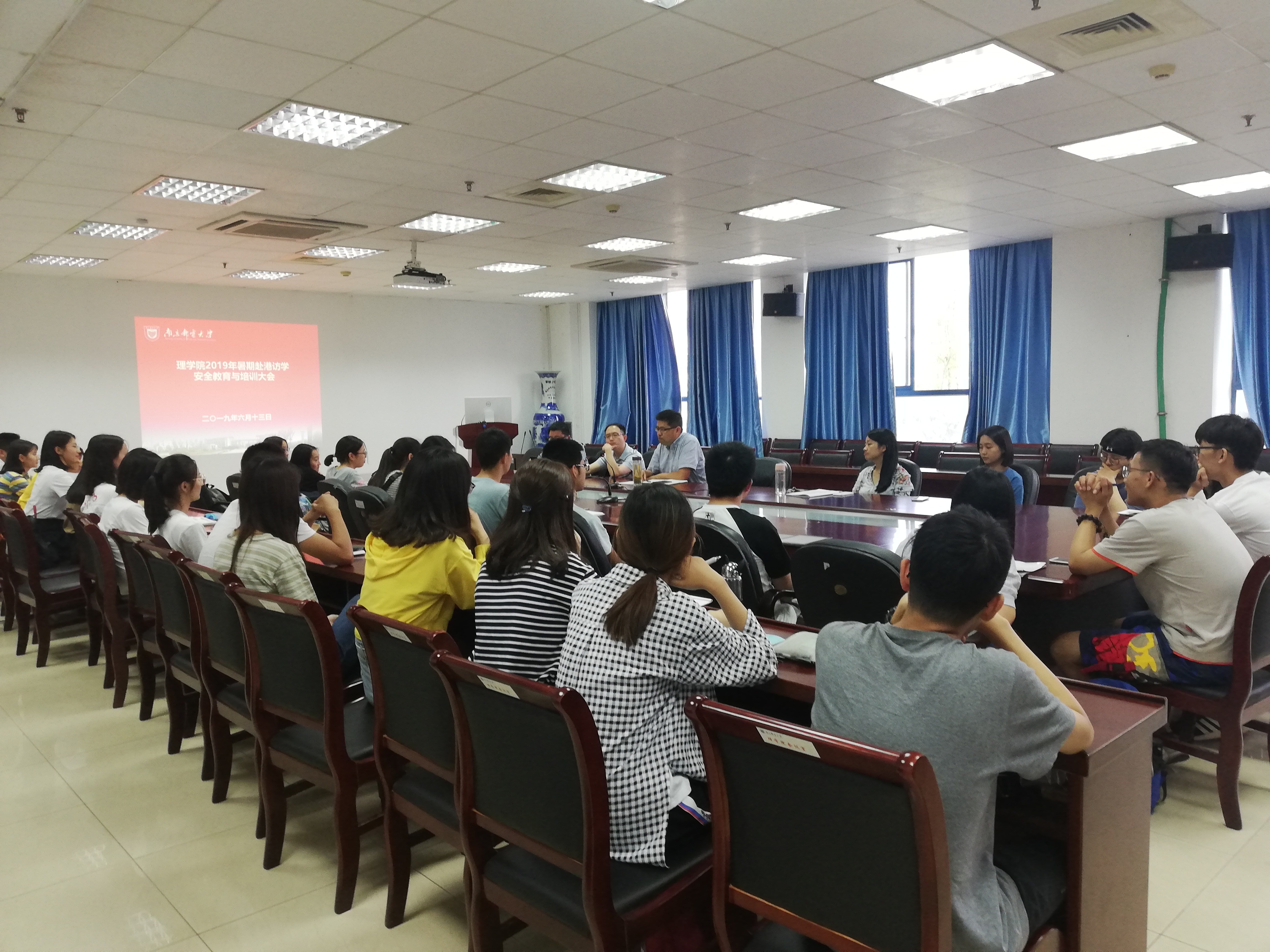 2019年6月13日晚上18:00,理学院在教2-314会议室召开2019年暑期赴港访学安全教育与培训大会。学院党委书记温勇教授、副书记高翔副研究员、院长助理金正猛教授,统计学系支部书记武婷婷副教授参加会议,会议由高翔副书记主持。