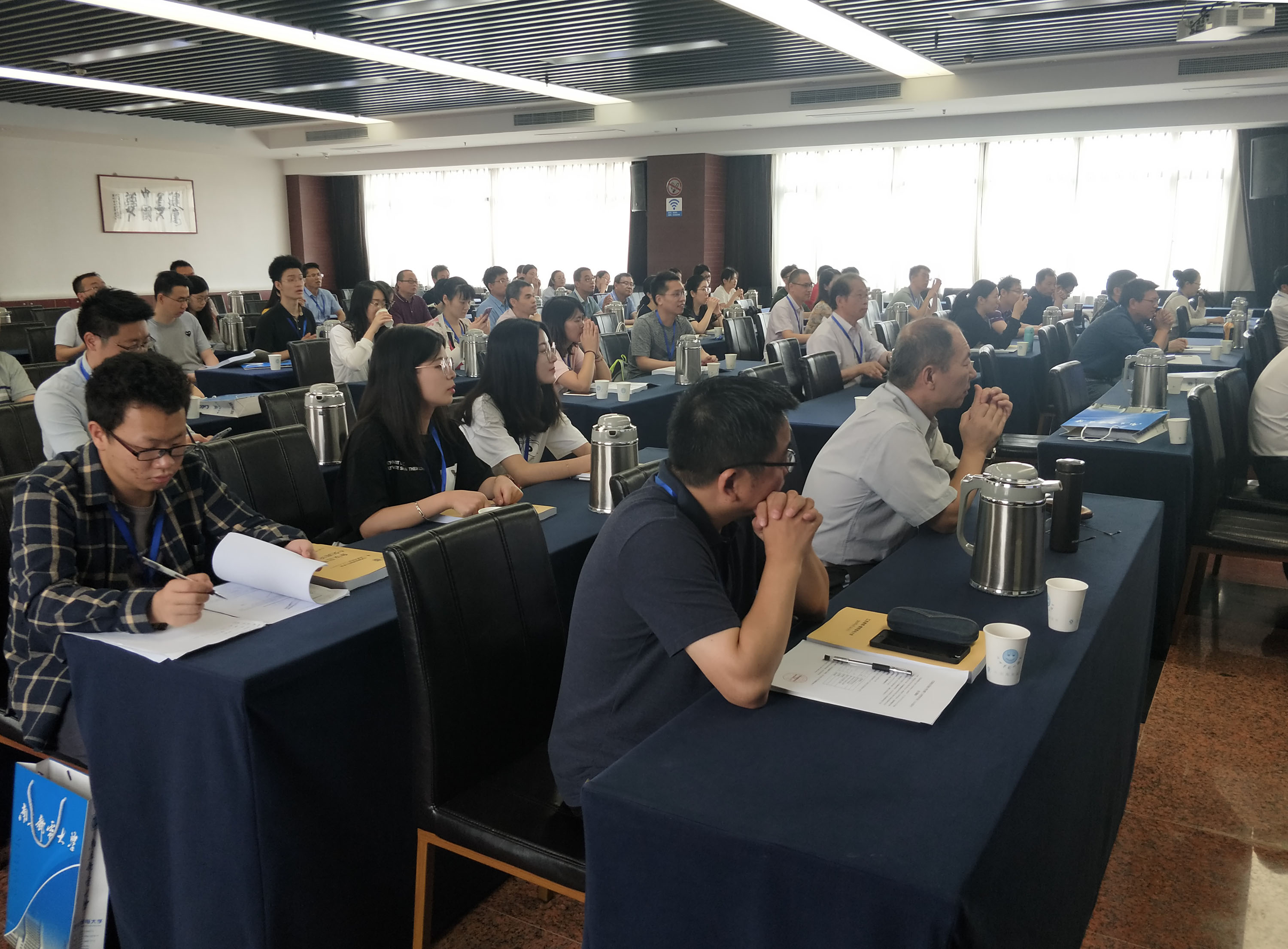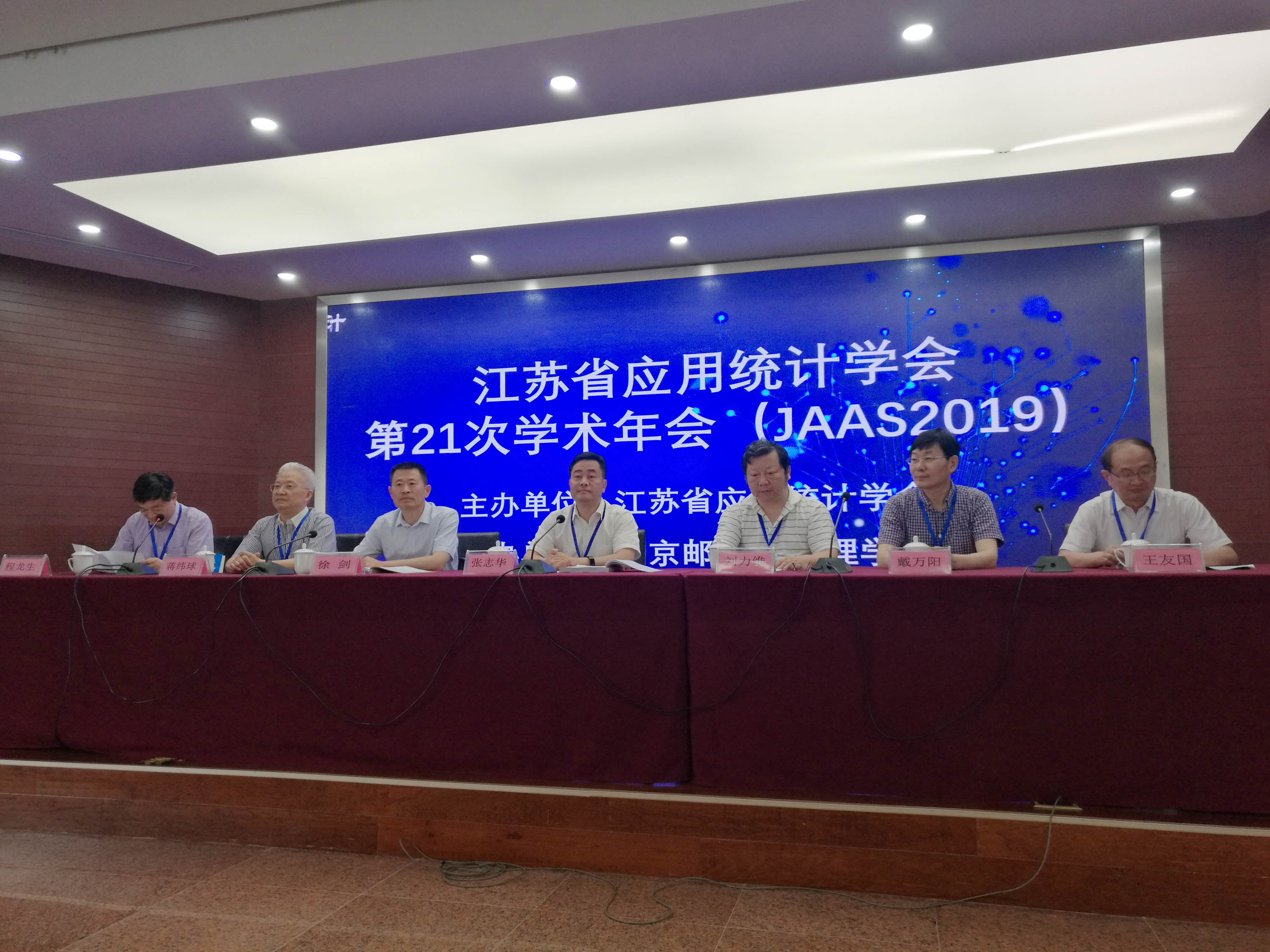 6月14-16日,江苏省应用统计学会第21次学术年会(JAAS2019)在我校召开,年会由江苏省应用统计学会主办,理学院承办。校党委常委副校长张志华教授、江苏省科学技术协会学术学会部副部长徐剑同志、江苏省应用统计学会理事长南京理工大学刘力维教授、学会监事长法尔胜股份有限公司原总经理蒋纬球高级经济师、学会副理事长兼江苏省概率统计学会理事长戴万阳教授、学会副理事长南京航空航天大学刘心声教授、学会副理事长我院唐加山教授、学会秘书长南京理工大学程龙生教授,校党委常委组织部部长王友国教授,理学院党委书记温勇教授,以及来自南京大学等全省33所高校及南京鼓楼医院等5家非高校单位共95名专家学者参加了会议。