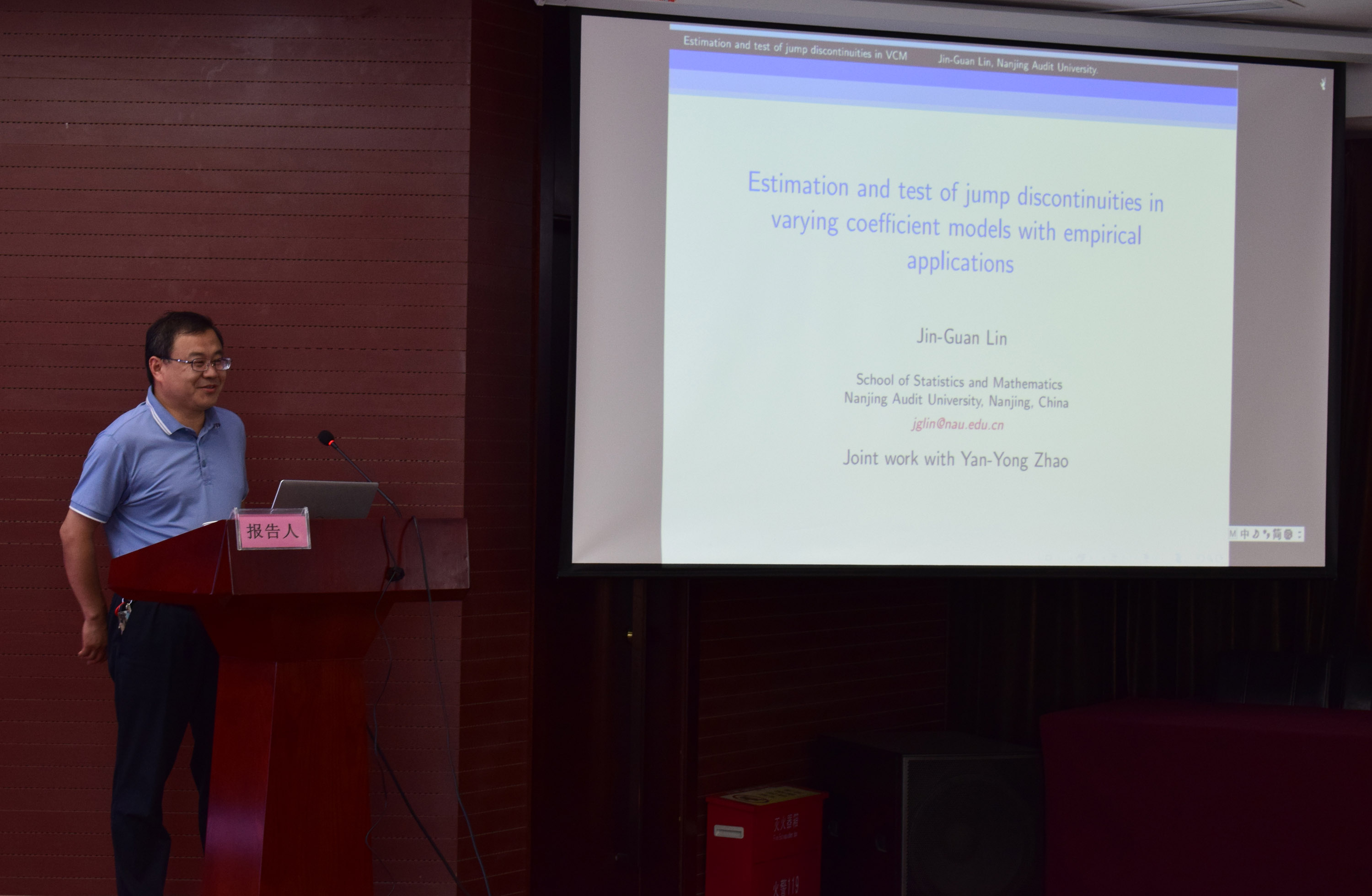 开幕式后,西安理工大学胡绍林教授作题为“工程大数据的概念、内涵、技术与应用”的学术报告,南京审计大学林金官教授和我院袁克海教授分别以“Estimation and test of jump discontinuities in varying coefficient models with empirical applications”和“Statistics in Practice: Conventional vs New Methods”为题作大会报告。这三个特邀大会报告视野开阔,都是应用统计方面的前沿内容,给入会者奉上了一场学术盛宴。另外,提交会议论文的作者分别在统计模型、统计方法以及统计应用等6个分组会场中进行了报告和交流。