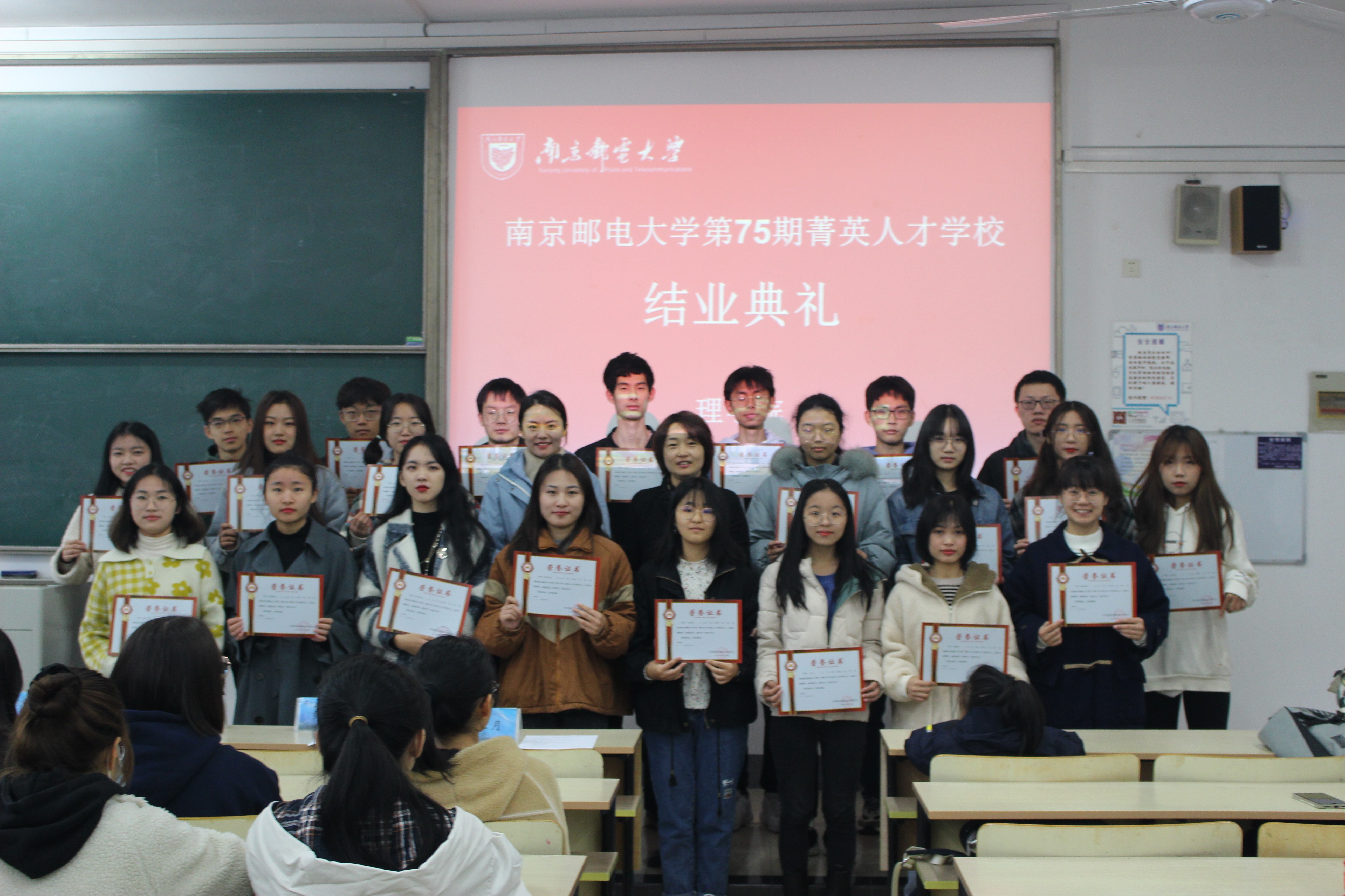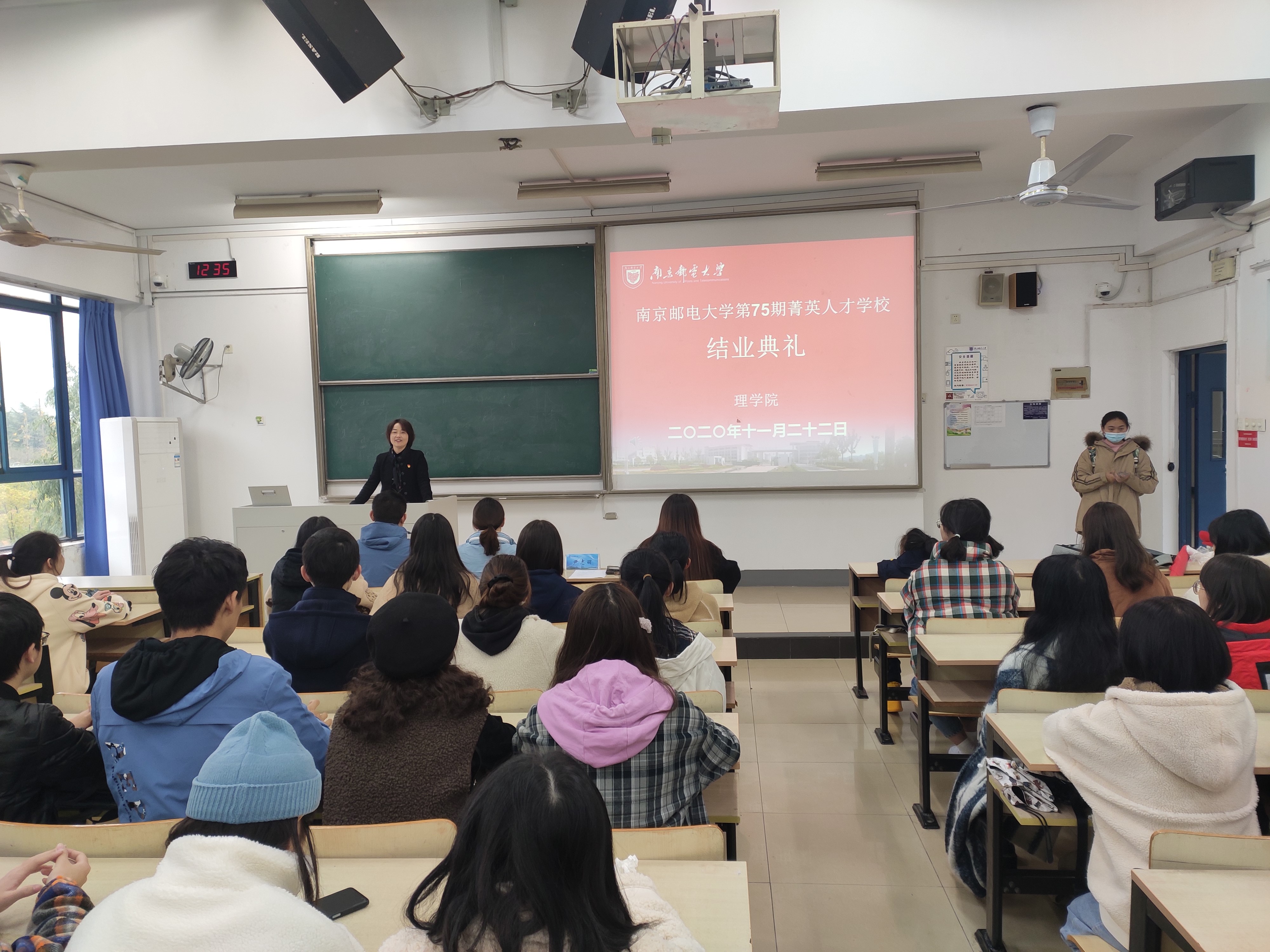 11月22日,理学院在教2-304举行南京邮电大学第75期菁英人才学校结业典礼。院党委书记尹志丽,党委副书记、副院长汪颖,辅导员王红月以及第75期菁英人才学校全体学员出席典礼。典礼由分团委书记王新光主持。