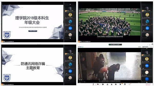 2020年12月7日,理学院2018级开展 “诚信人生,安全校园”主题教育,会议通过腾讯会议线上召开,由2018级辅导员王红月主持,围绕着考试诚信教育、防通讯网络诈骗主题教育、消防安全主题教育三大主题展开。