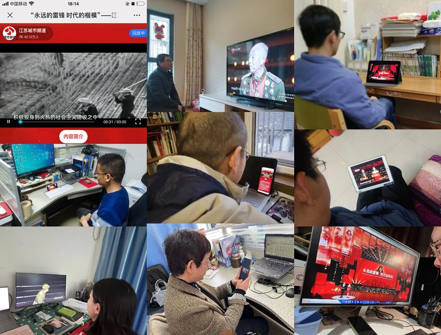 为了更好地发扬雷锋精神,传承“助人为乐、无私奉献”的优秀中华传统美德,3月5日-6日在江苏卫视、江苏城市频道、江苏教育频道、江苏有线、江苏综艺频道、央视网、央视频、“学习强国”江苏学习平台和江苏时代楷模发布厅公众号等平台先后播出了“永远的雷锋 时代的楷模”江苏省纪念毛泽东等老一辈革命家为雷锋同志题词60周年主题文艺晚会。南京邮电大学理学院物理实验教学中心党支部的各位教师党员自行观看了晚会,接受了政治洗礼和思想再教育,得到了很好的传统文化、精神及道德方面的熏陶。
