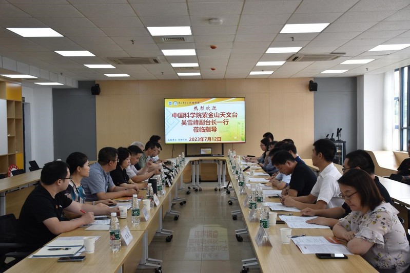 7月12日下午,中国科学院紫金山天文台副台长吴雪峰一行来我院调研交流。我校党委常委、副校长蒋国平,理学院党委书记尹志丽,副书记、院长唐加山,教务处副处长兼教师发展中心副主任刘胜利,理学院副院长普勇及相关党支部书记、青年科研骨干教师参会。会议由院党委书记尹志丽主持。