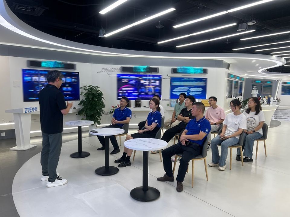 在企业展厅,实践团成员详细了解了中兴通讯在5G、算力、智能制造等领域的创新成果。企业依托前沿技术,打造了多项智能化产品和解决方案,展现了在信息通信行业的领先实力。通过现场讲解与互动体验,师生们对“统计建模、数学优化、物理创新”在产业升级中的作用有了更加直观的认识。