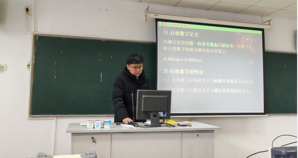 在随后进行的新教师试讲环节中,王安冉、赵鹏飞两位青年教师依次进行了教学展示。王安冉老师围绕物理实验课程的基本流程,从实验准备、操作规范到数据处理,进行了系统清晰、重点突出的讲授;赵鹏飞老师则聚焦误差理论与不确定度分析等内容,结合实例,深入浅出地讲解了相关知识点,讲解细致,逻辑严谨。试讲结束后,与会教师围绕教学设计、语言表达、课堂组织等方面,对两位新教师的表现进行了点评,并提出中肯建议。通过试讲展示与集体评议,不仅帮助新教师发现不足、明确方向,也为他们快速适应教学岗位、提升教学能力奠定了坚实基础,充分体现了集体教研赋能青年教师成长的作用。