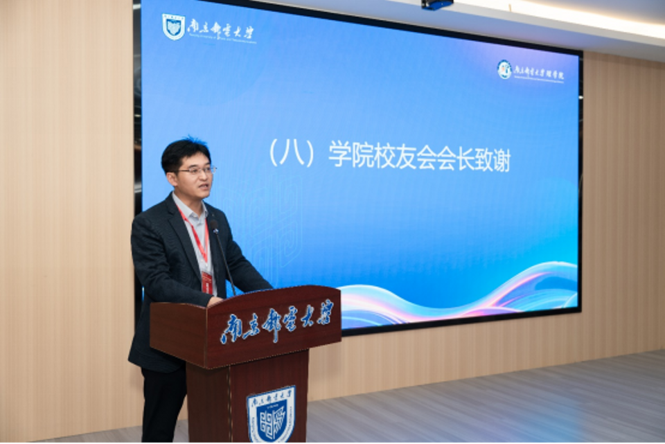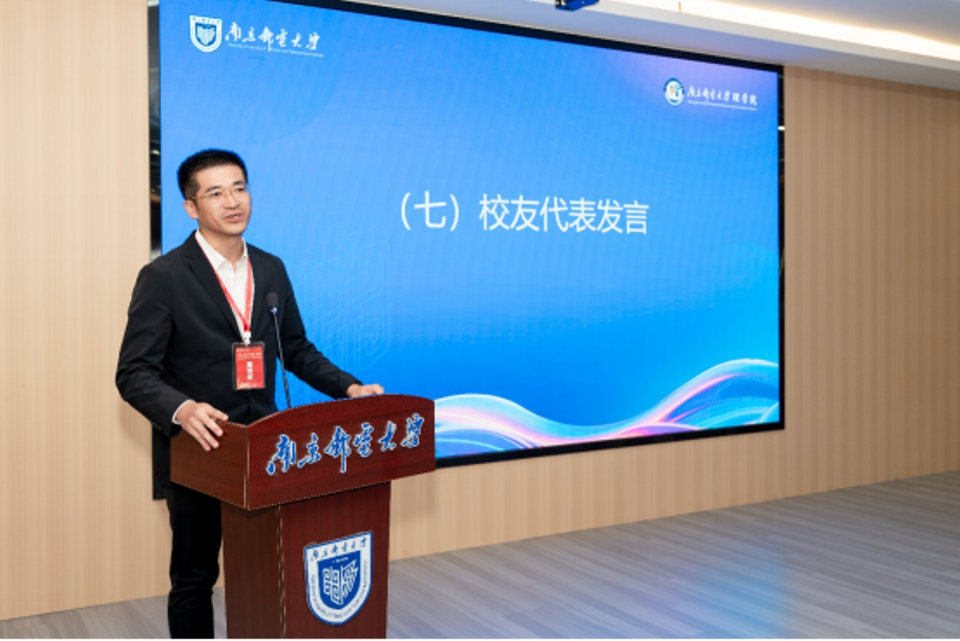 1999级校友、中国移动福建公司莆田分公司副总经理金羽作为校友代表发言。他深情回顾在母校的求学岁月,感恩母校悉心栽培与师长谆谆教诲,对学院近年来跨越式发展倍感振奋与自豪。他表示,广大校友将始终心系母校、关注学院,以校友会为桥梁纽带,积极回馈母校、助力学子成长,为学院高质量发展贡献智慧与力量。