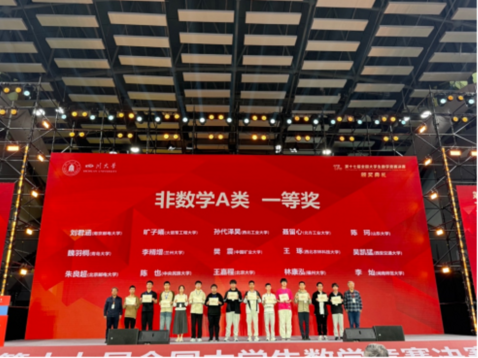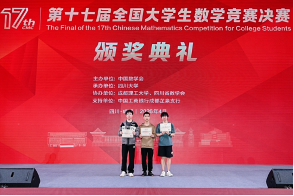 4月19日,第十七届全国大学生数学竞赛决赛在四川大学圆满落幕。我校3名同学入围决赛,并全部斩获国家级奖项。其中1项国家一等奖(非数学A类)、2项国家二等奖(数学类高年级组、非数学A类)。全国决赛阶段共有1365名选手参加,共评选出决赛全国一等奖281项、二等奖401项、三等奖627项。全国大学生数学竞赛是高等教育学会的学科竞赛榜单观察目录所列赛事,并入选2025-2026年全国青少年科技创新大赛青年组关联赛事名单。