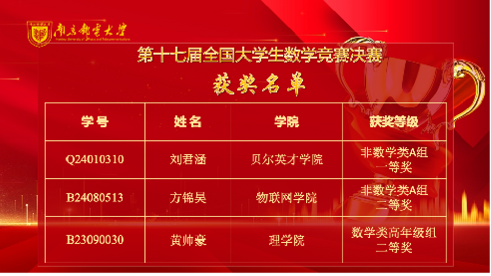 我校学生在本次竞赛中取得的优异成绩,离不开学校对数学学科建设、专业建设及人才培养工作的高度重视,离不开本科生院、创新创业教育学院和理学院的关心与支持,也离不开教练团队的辛勤付出和学生的拼搏努力。此次佳绩的取得,进一步彰显了我校人才培养的扎实成效,将激励更多学子投身数学学习与研究,助力学校学科建设和人才培养工作再上新台阶。